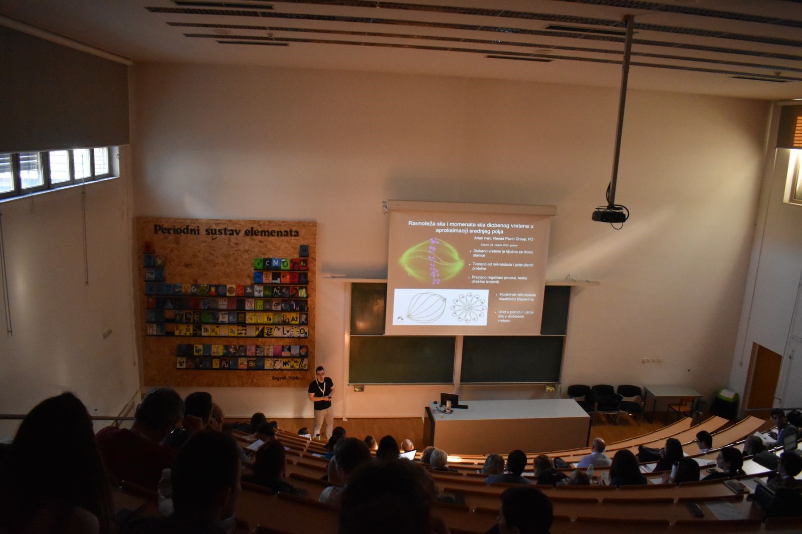 U stimulativnoj znanstvenoj atmosferi studenti svih 7 doktorskih studija na PMF-u (Matematika, Kemija, Biologija, Fizika, Oceanologija, Geologija i Geografija) predstavili su svoja istraživanja u obliku 40 usmenih prezentacija i 77 posterskih priopćenja.