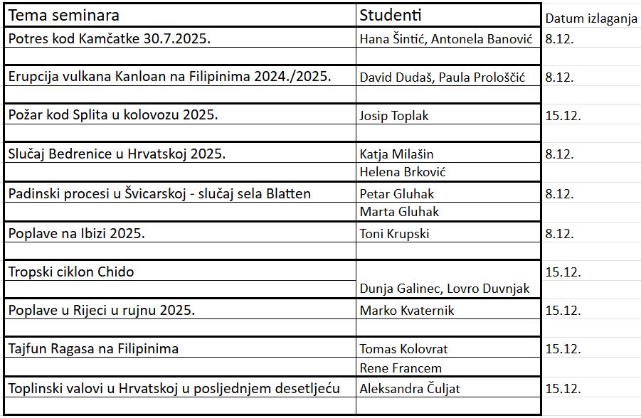 U nastavku je priložen i izlaganja raspored seminarskih radova.