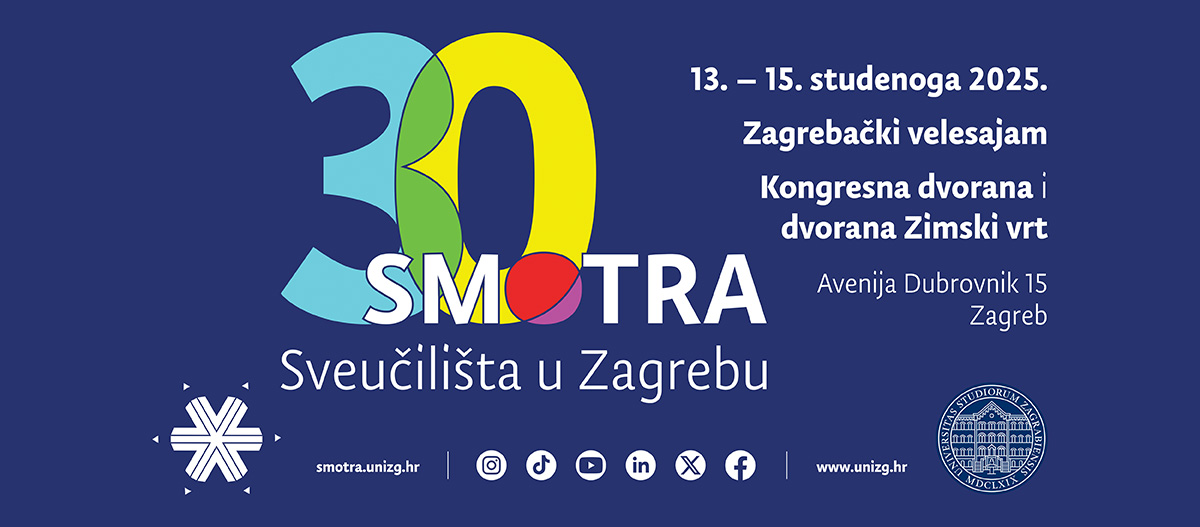Sveučilište u Zagrebu i ove godine s ponosom organizira Smotru kako bi vas upoznalo s raznolikim i bogatim programima koje nude sastavnice našeg Sveučilišta. Smotra je prilika da saznate sve što vas zanima o studijskim programima, uvjetima upisa, studentskom životu, kao i mogućnostima zapošljavanja nakon završetka studija.